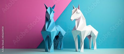 Poster colorful paper unicorns and pegasus on a dark background create a whimsical display. the paper unico
