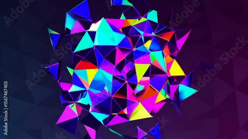 The watermark will not be included on Poster.: Colorful polygonal sphere rotating on dark background