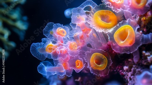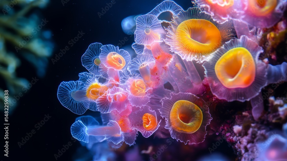 Poster colorful underwater fantasy formation featuring fragile liquid structures in abstract macro photogra