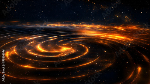 The watermark will not be included on Poster.: Concept of gravitational waves visualized with abstract ripple effects in space-time, glowing agains