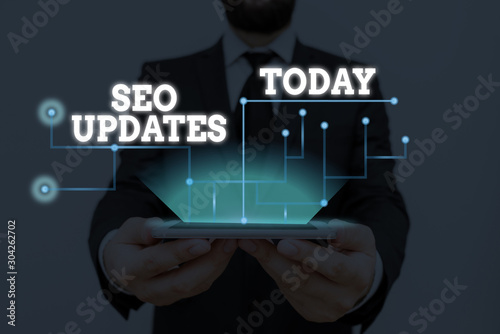 Poster : Conceptual hand writing showing seo updates - concept meaning new information or design in search eng