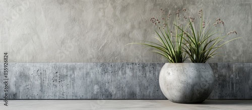 Poster : Concrete pot on a concrete background interior decor element - copy space image - place for adding tex