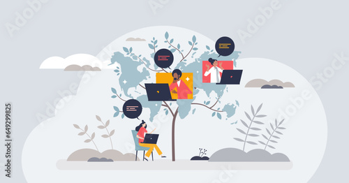 Poster : Conference call using online group talking software tiny person concept - virtual seminar, learning o