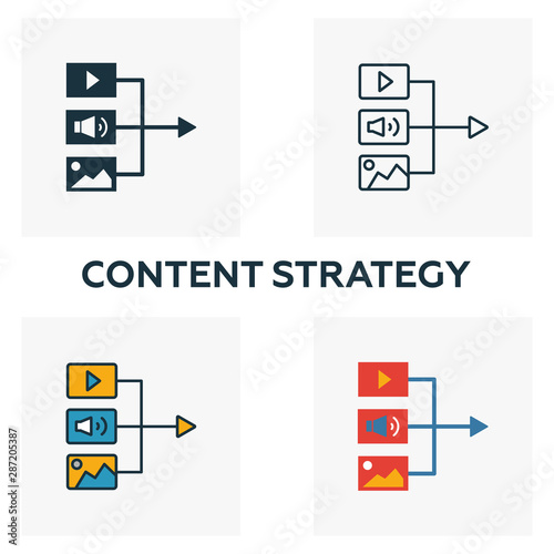 The watermark will not be included on Poster.: Content strategy icon set - four elements in diferent styles from content icons collection - creative