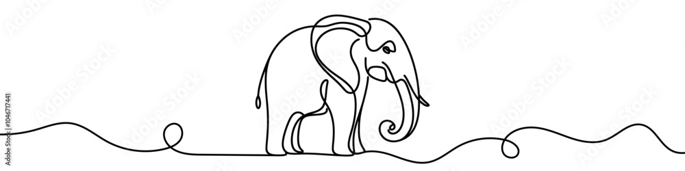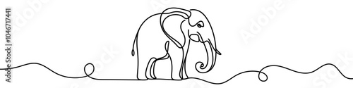 The watermark will not be included on Poster.: Continuous line drawing of an elephant walking in a minimalist style