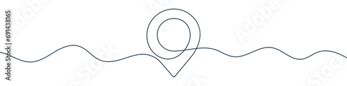 The watermark will not be included on Poster.: Continuous line drawing of gps pin - one line drawing background -