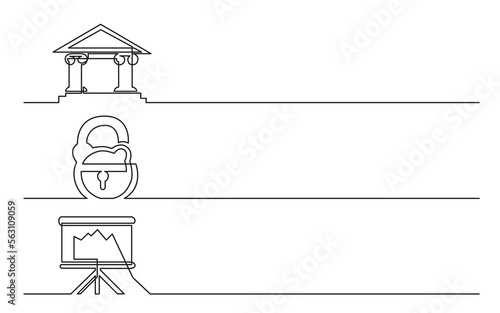 Poster continuous line drawing vector illustration with fully editable stroke of bank lock presentation scr