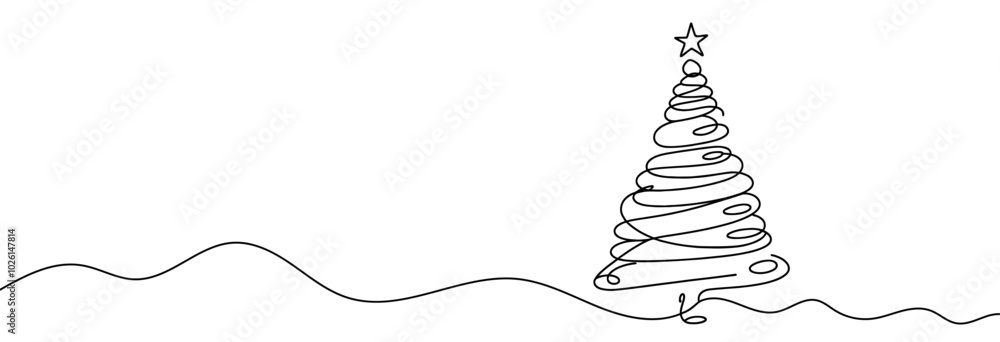 The watermark will not be included on Poster.: Continuous linear drawing of christmas tree - one line drawing christmas tree - christmas tree in one