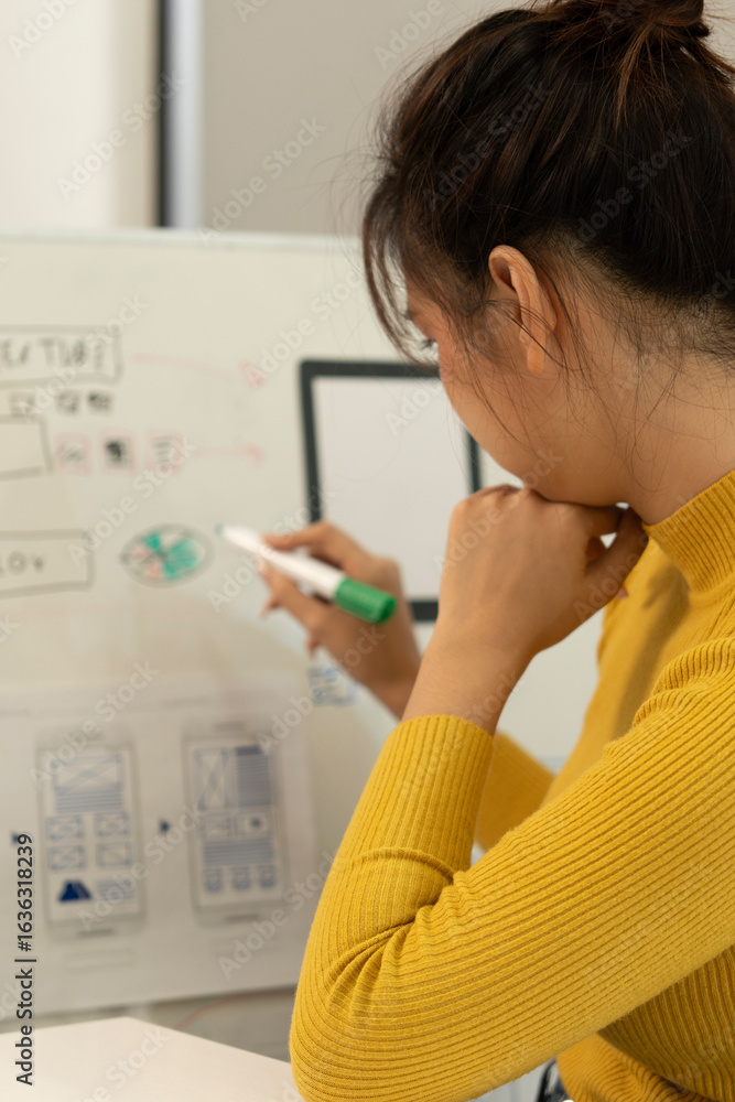 The watermark will not be included on Poster.: Creative web designer planning ui application and developing digital template