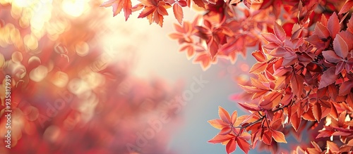 The watermark will not be included on Poster.: Crown of a tree featuring the initial autumn leaves background with selective focus and copyspace fo