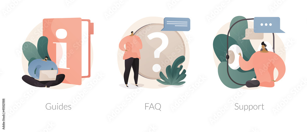 The watermark will not be included on Poster.: Customer help service abstract concept vector illustration set - guides, faq and website support team