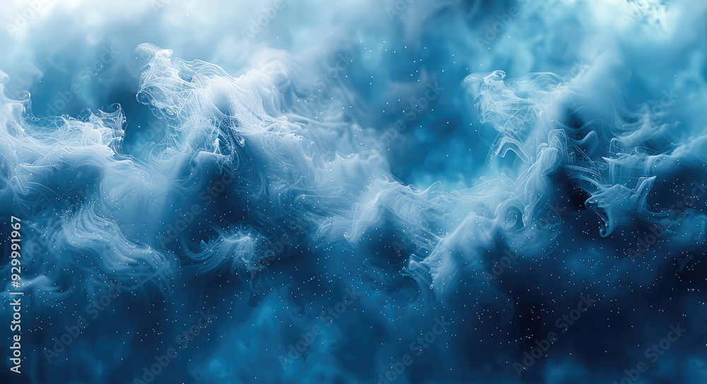 The watermark will not be included on Poster.: Cyan particle liquid smoke background - generative ai -