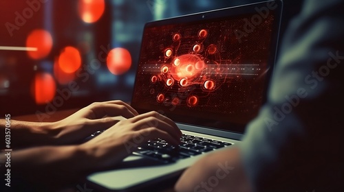 The watermark will not be included on Poster.: Cyber security and cybercrime - system hacked with master key lock on laptop, notebook - cyber attack
