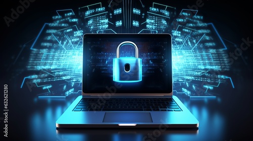 The watermark will not be included on Poster.: Cybersecurity and data privacy illustration - ai generative -