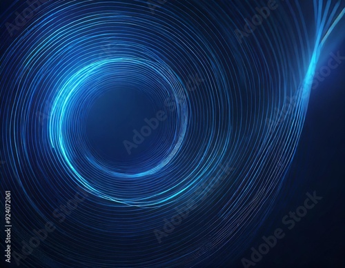 The watermark will not be included on Poster.: Dark blue abstract background featuring glowing blue swirl circle lines, creating a dynamic, futuris