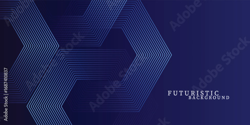 Poster dark blue background with hexagon geometric lines pattern. abstract shiny hexagon lines. futuristic