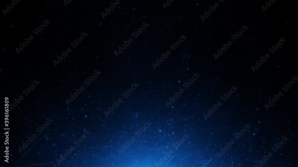 The watermark will not be included on Poster.: Dark blue features animated technology based shapes, connected blurry lines and dots background -