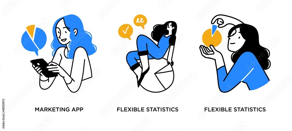The watermark will not be included on Poster.: Data analisys mobile market applications - set of business concept illustrations - flexible statistic