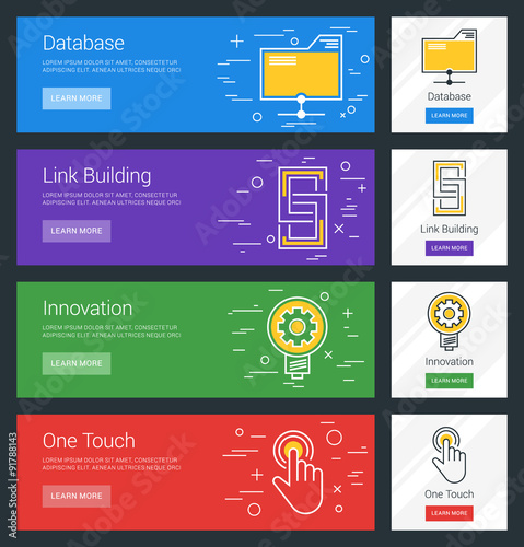 Poster database. link building. innovation. one touch. flat design concept. set of vector web banners