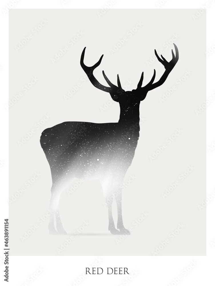 The watermark will not be included on Poster.: Deer silhouette - isolated abstract animal outline - night starry sky
