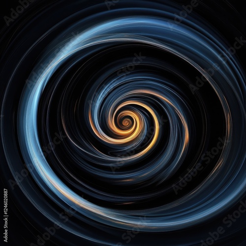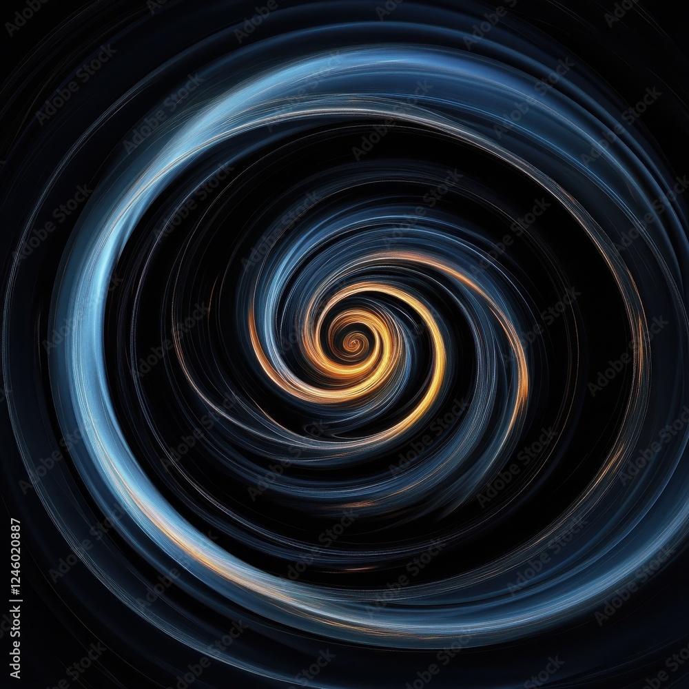 Poster digital abstract art of a spiral vortex with contrasting light and dark swirls in a black background