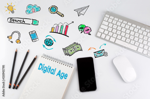 Poster digital age. office desk table with computer - Posters Poster digital age. office desk table with computer - Posters