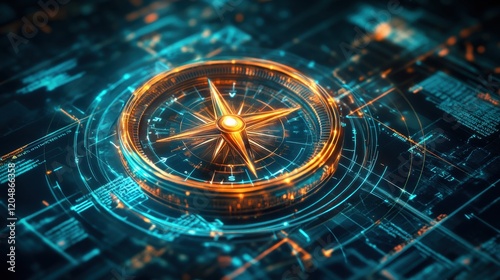 Poster : Digital compass on futuristic interface with neon glow effects
