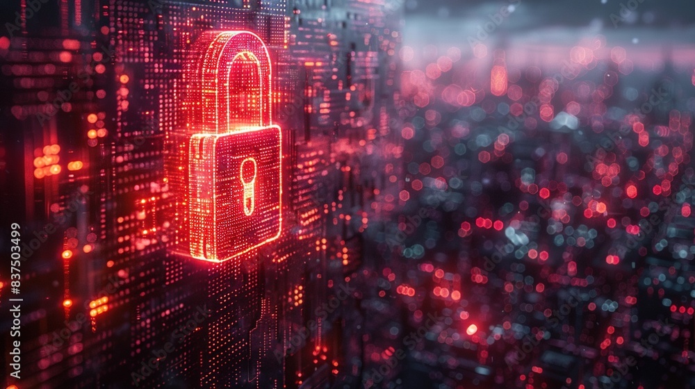 The watermark will not be included on Poster.: Digital image of the lock - the concept of aesthetic security - big data flow - modern data safety back