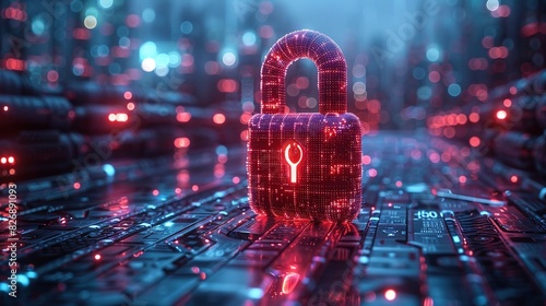 The watermark will not be included on Poster.: Digital image of the lock - the concept of aesthetic security - big data flow - modern data safety back