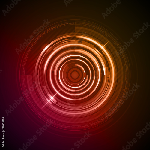 Poster : Digital red circles abstract vector background - tecno rings design with black bright dynamic -