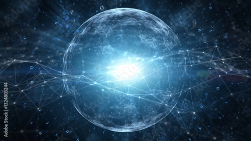 The watermark will not be included on Poster.: Digital technology sphere with network lines illustration -