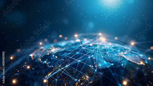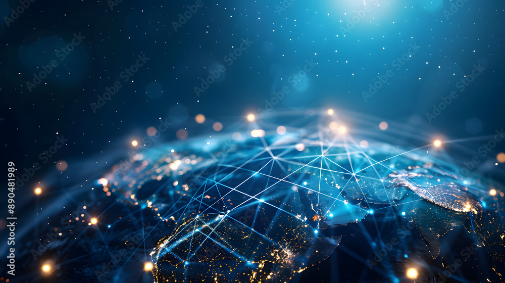 Poster : Digital world map planet earth space global globe sky space 5g wireless network ai big data communic