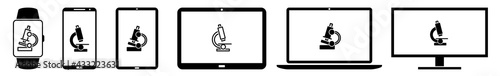 The watermark will not be included on Poster.: Display lab, microscope, science icon devices set | web screen device online | laptop vector illustr