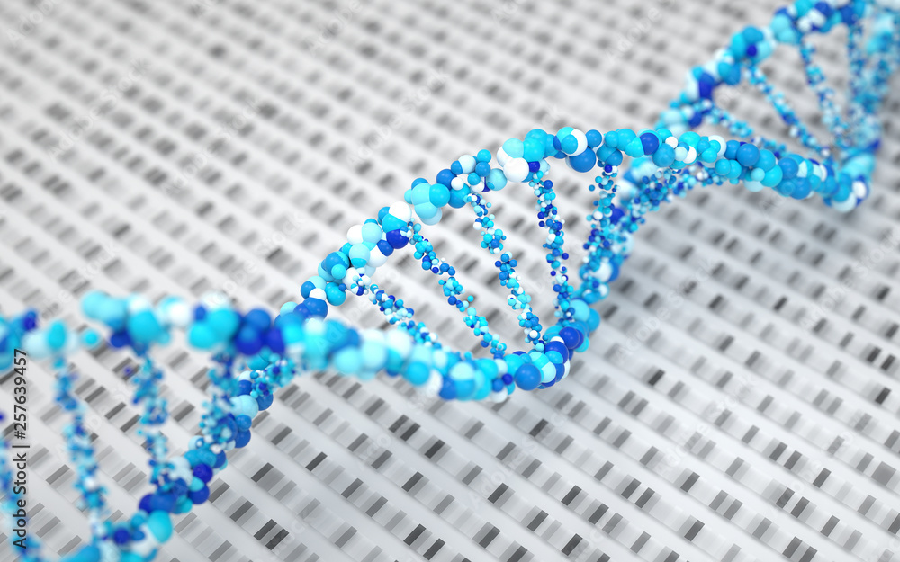 The watermark will not be included on Poster.: Dna molecules, structure of the genetic code, 3d rendering,conceptual image -