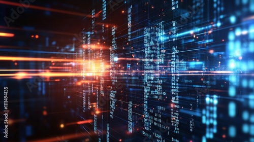 The watermark will not be included on Poster.: Dynamic technology background featuring abstract software elements, futuristic design, and geometric
