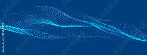 The watermark will not be included on Poster.: Dynamic wave of glowing dots - futuristic dot wave of bright particles - weave effect - futuristic back