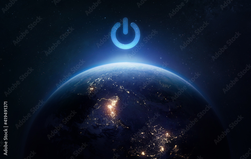 The watermark will not be included on Poster.: Earth hour theme - earth planet in outer space - power button of electricity - elements of this image f