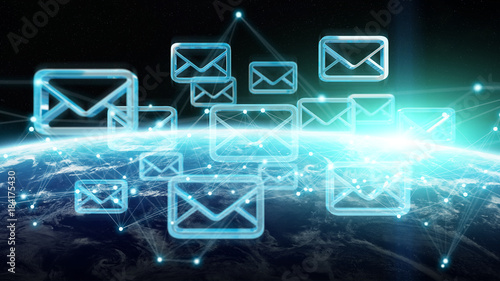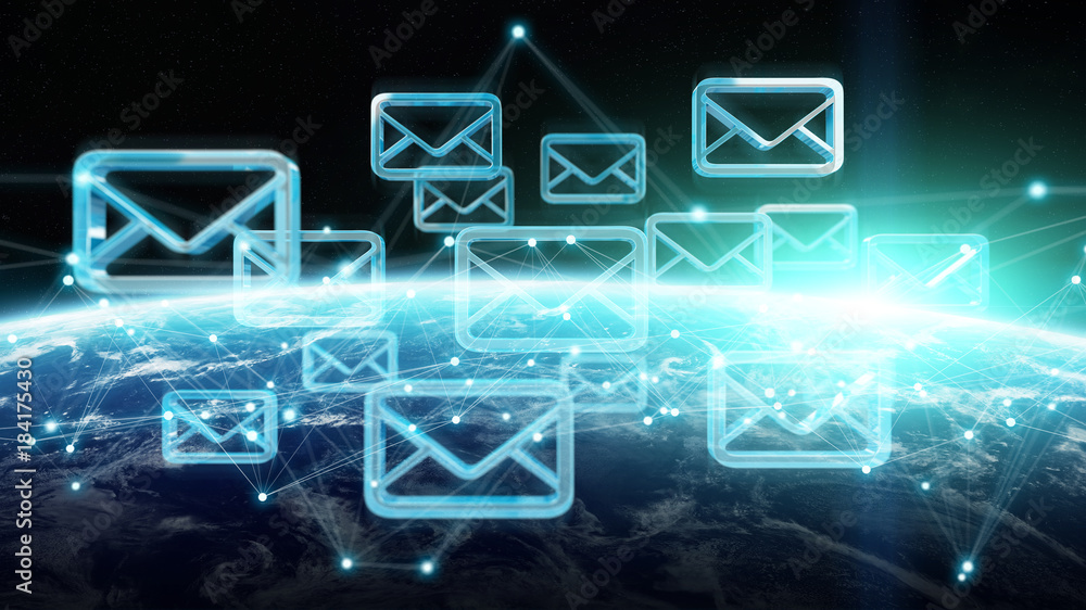 The watermark will not be included on Poster.: Emails exchanges on planet earth 3d rendering