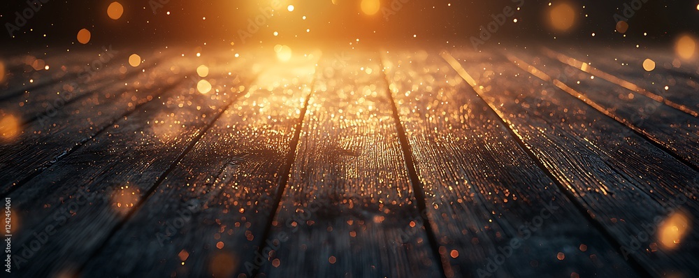 Poster empty brown wooden floor with blurred abstract night lights and bokeh, creating a perfect space for  - Posters Poster empty brown wooden floor with blurred abstract night lights and bokeh, creating a perfect space for - Posters