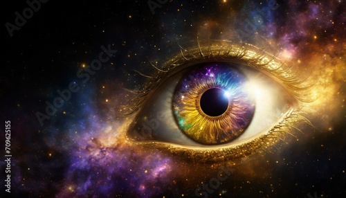 The watermark will not be included on Poster.: Eye with galaxy in the iris and universe in the background