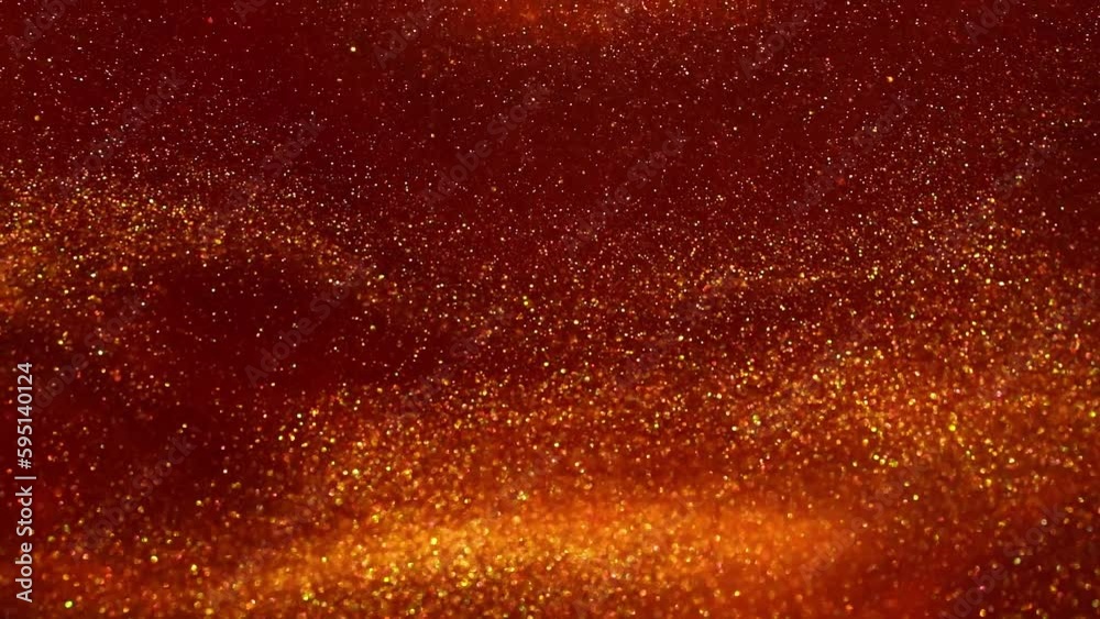 The watermark will not be included on Poster.: Falling jets of gold particles in red liquid - gold dust particles floating and dispersing in red flu
