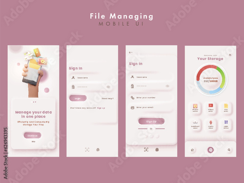 The watermark will not be included on Poster.: File managing mobile ui kit including as login, sign up, data storage screen for responsive website -