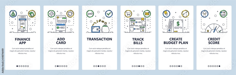 Poster : Finance transaction website and mobile app onboarding screens vector template