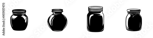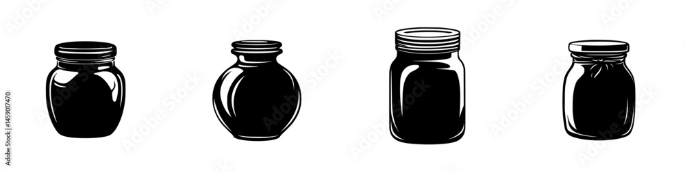 Flat black icon collection featuring various jar shapes and sizes suitable for diverse design projecPoster