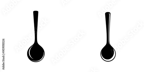 The watermark will not be included on Poster.: Flat black icon of two different spoon designs placed side by side on a white background for simple