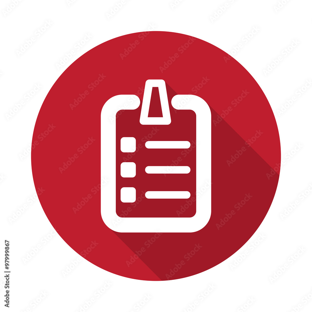 Poster flat checklist icon with long shadow on red circle