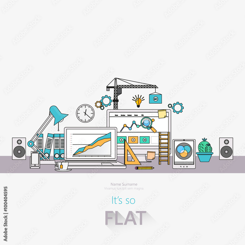 The watermark will not be included on Poster.: Flat design of website under construction, web page building process, site form layout and menu butt