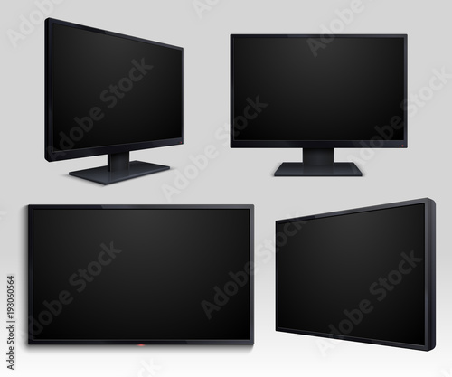 Poster : Flat tv screen and computer lcd monitor isolated 3d mockup for internet television concept