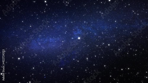 Poster flying through the stars and blue nebula in space. galaxy exploration through outer space towards gl