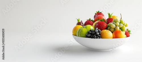Fresh fruits in a bowl placed on a white backdrop with copy space imagePoster